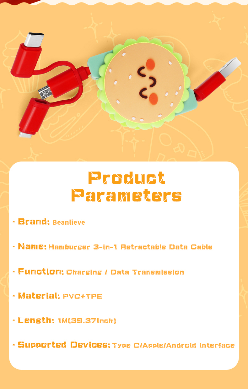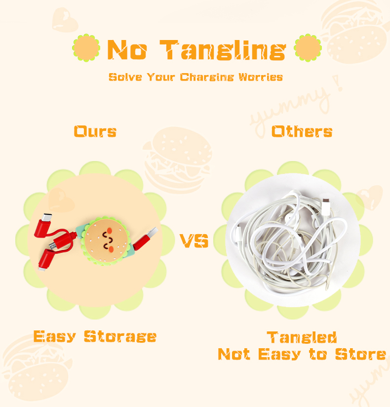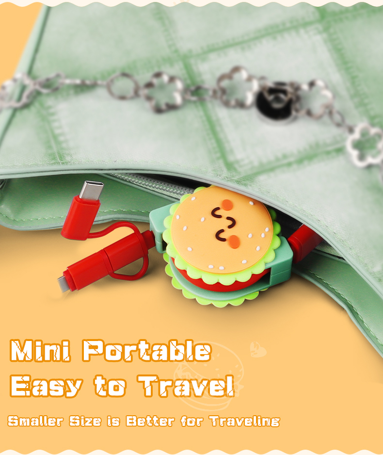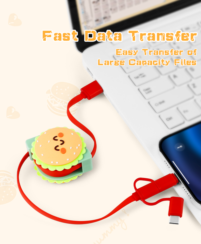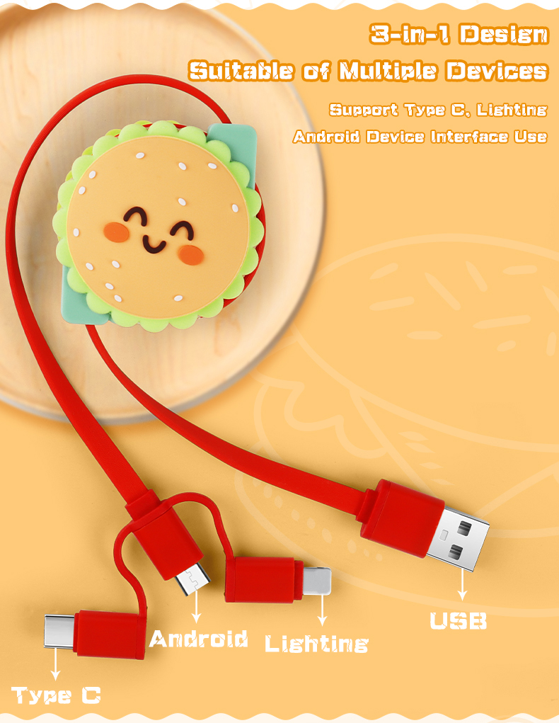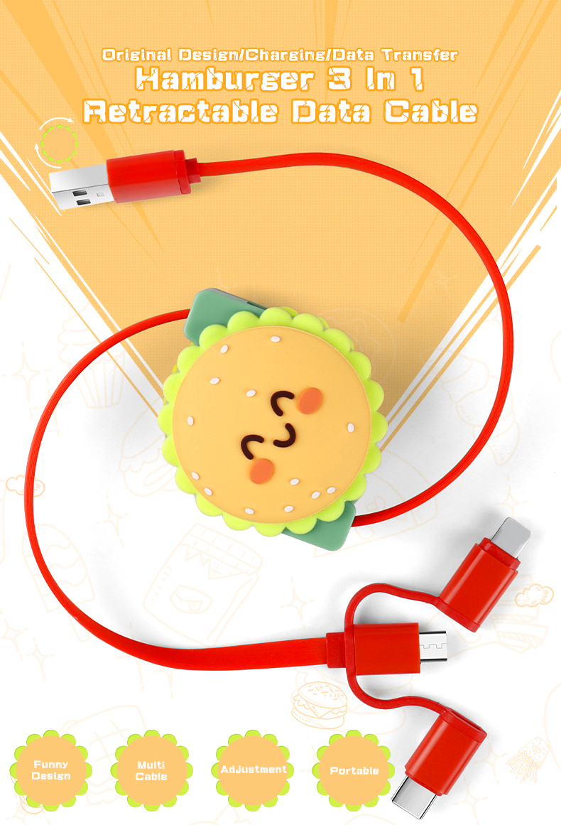 Cute Hamburger 3 In 1 Retractable Charging Cable
