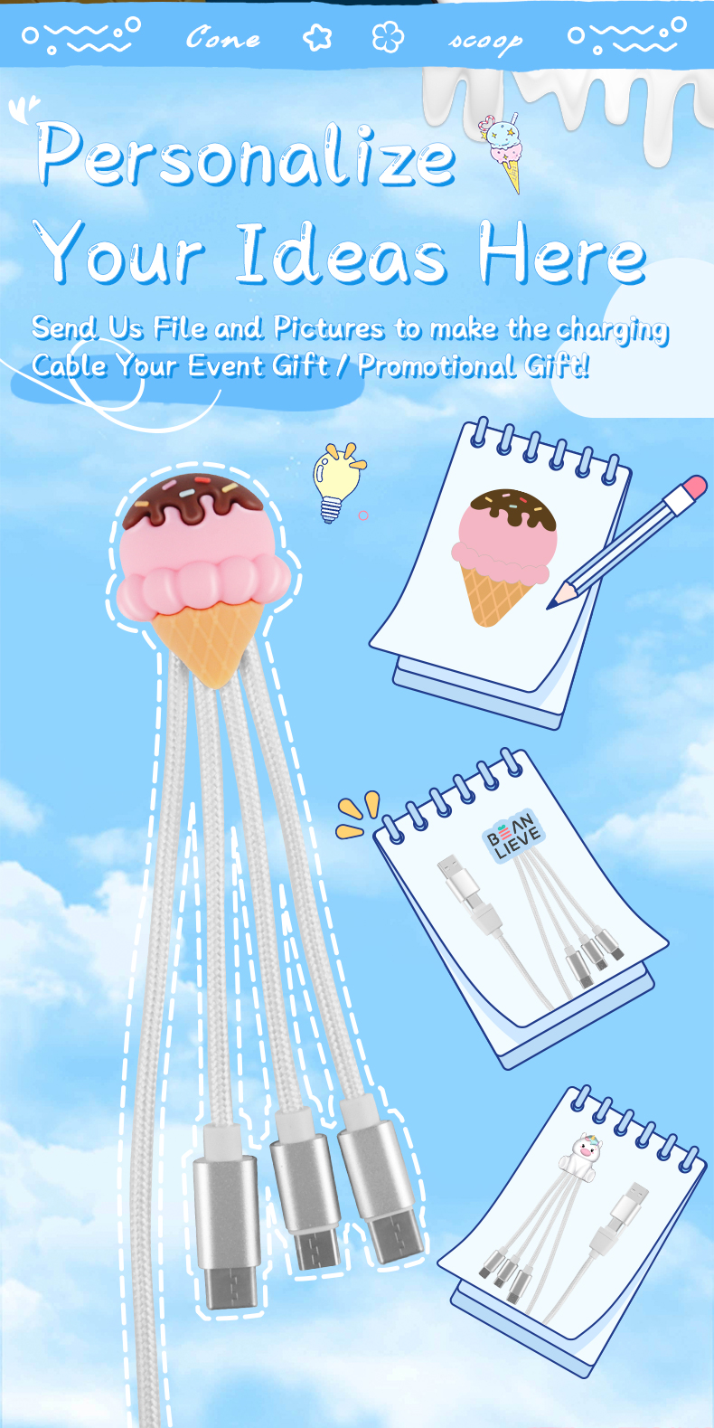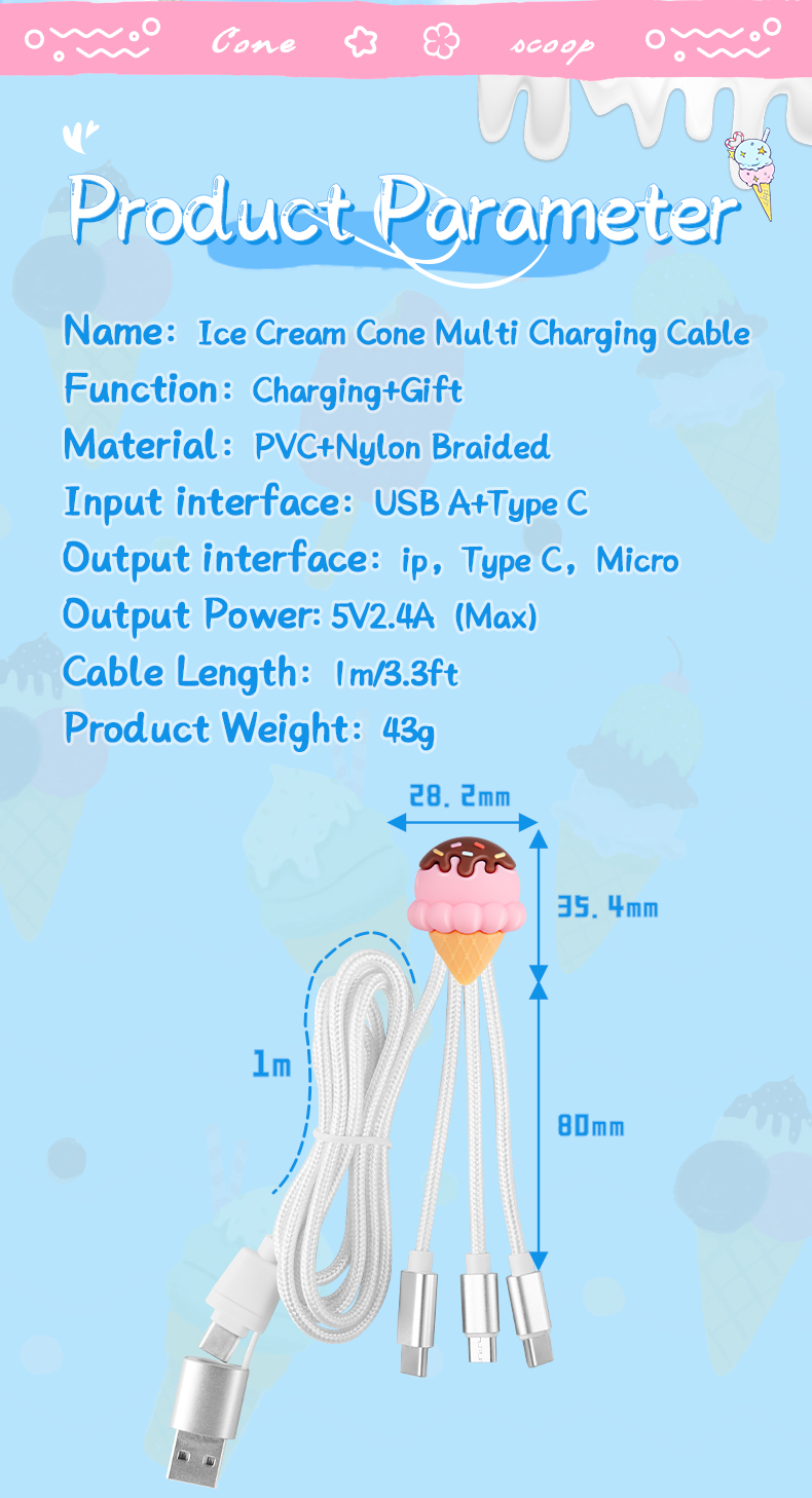| Product Name | Ice Cream Cone 4 in 1 Charging Cable |