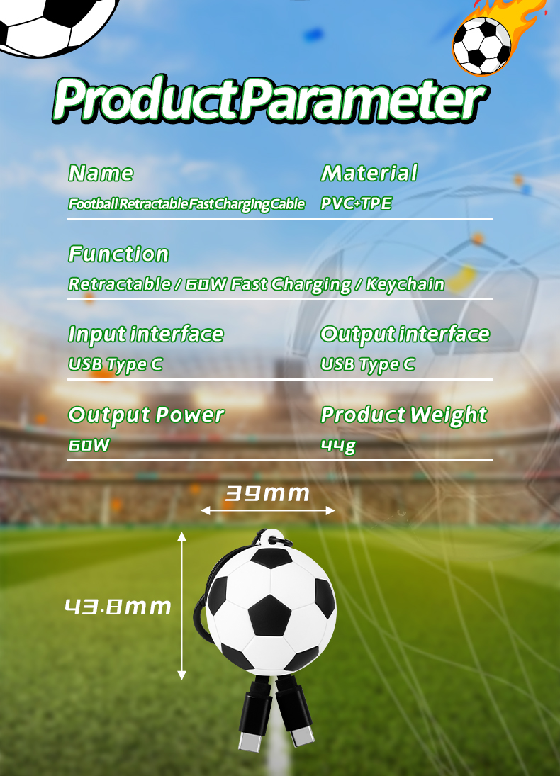 | Product Name | Sport Football Retractable 60W Fast Charging Data Cable |
