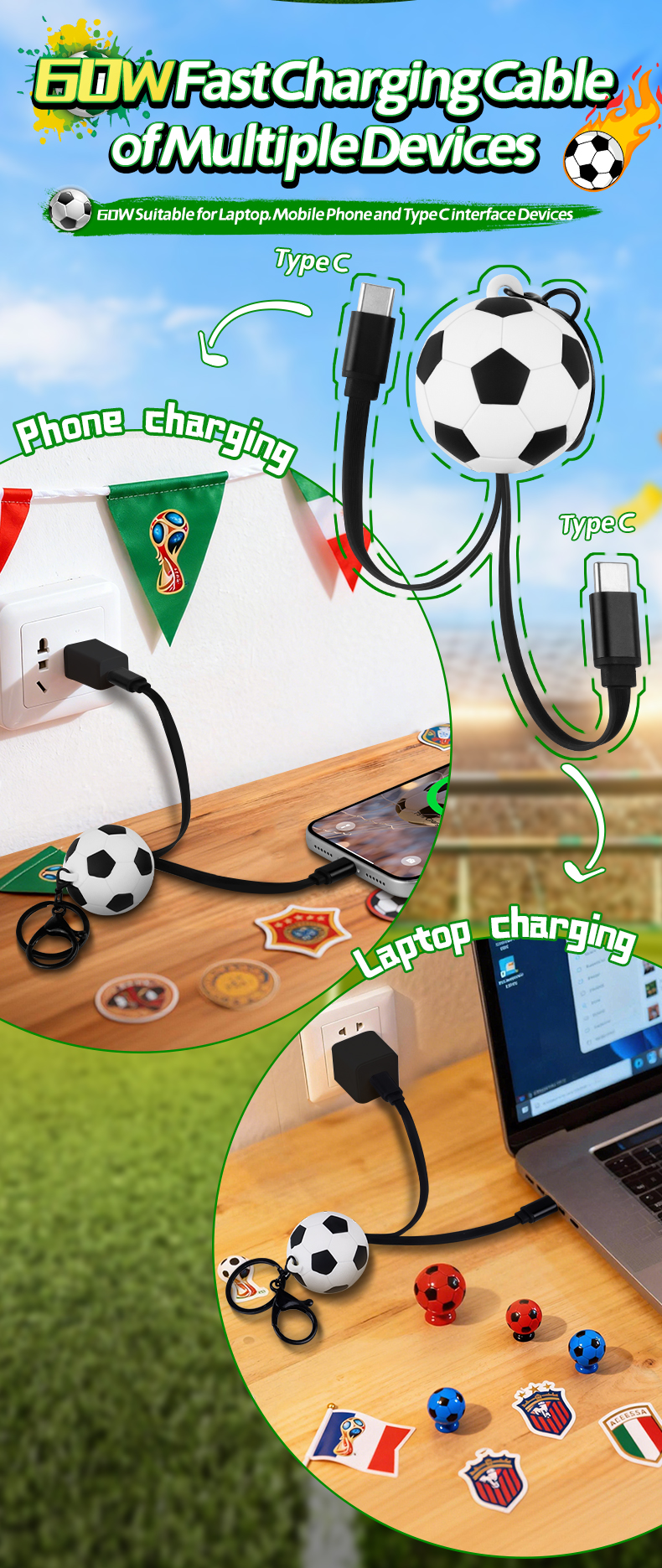 1.This SportFootball Retractable Data Cablem, It's sports soccer match, a great promotional giveaway item.