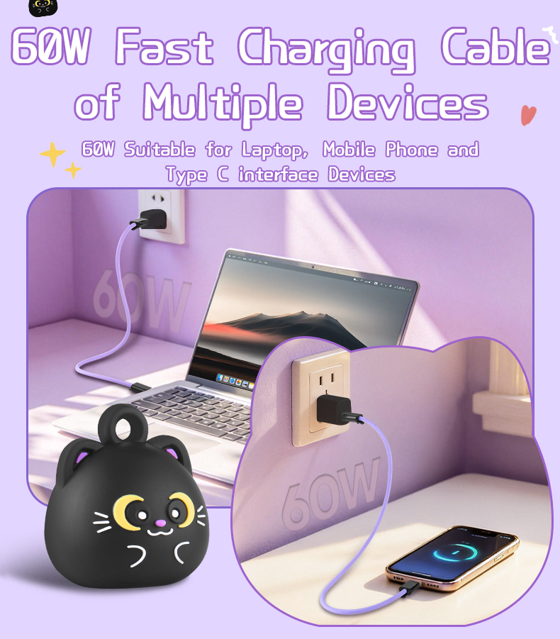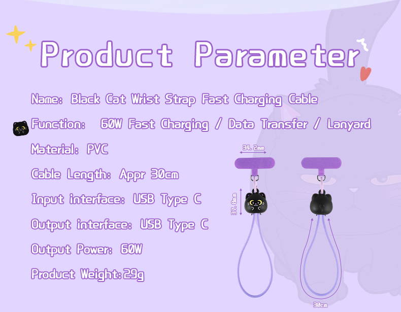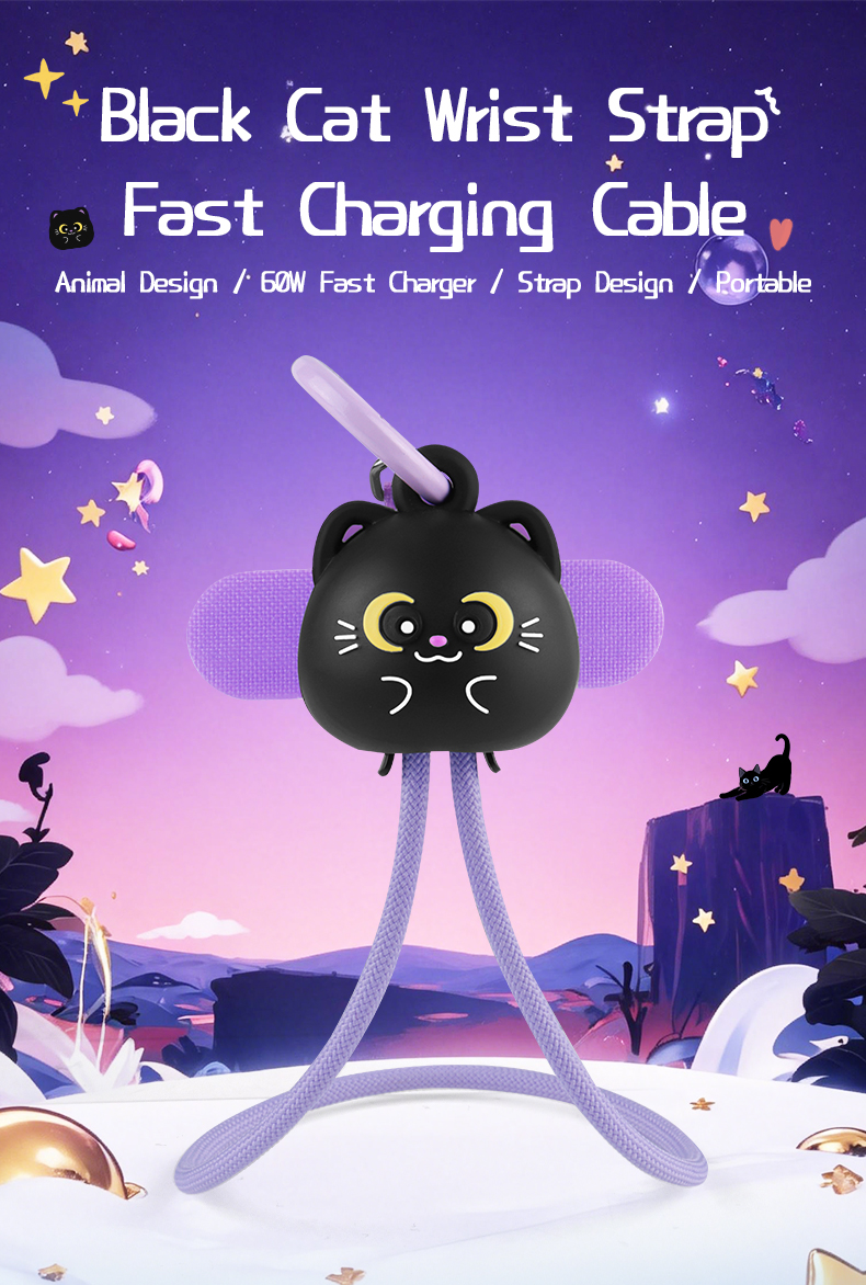 | Product Name | Black Cat Wrist Strap Lanyard 60W Fast Charging Data Cable |