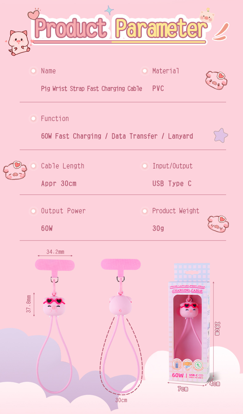 | Product Name | Pink Pig Wrist Strap Lanyard 60W Fast Charging Data Cable |